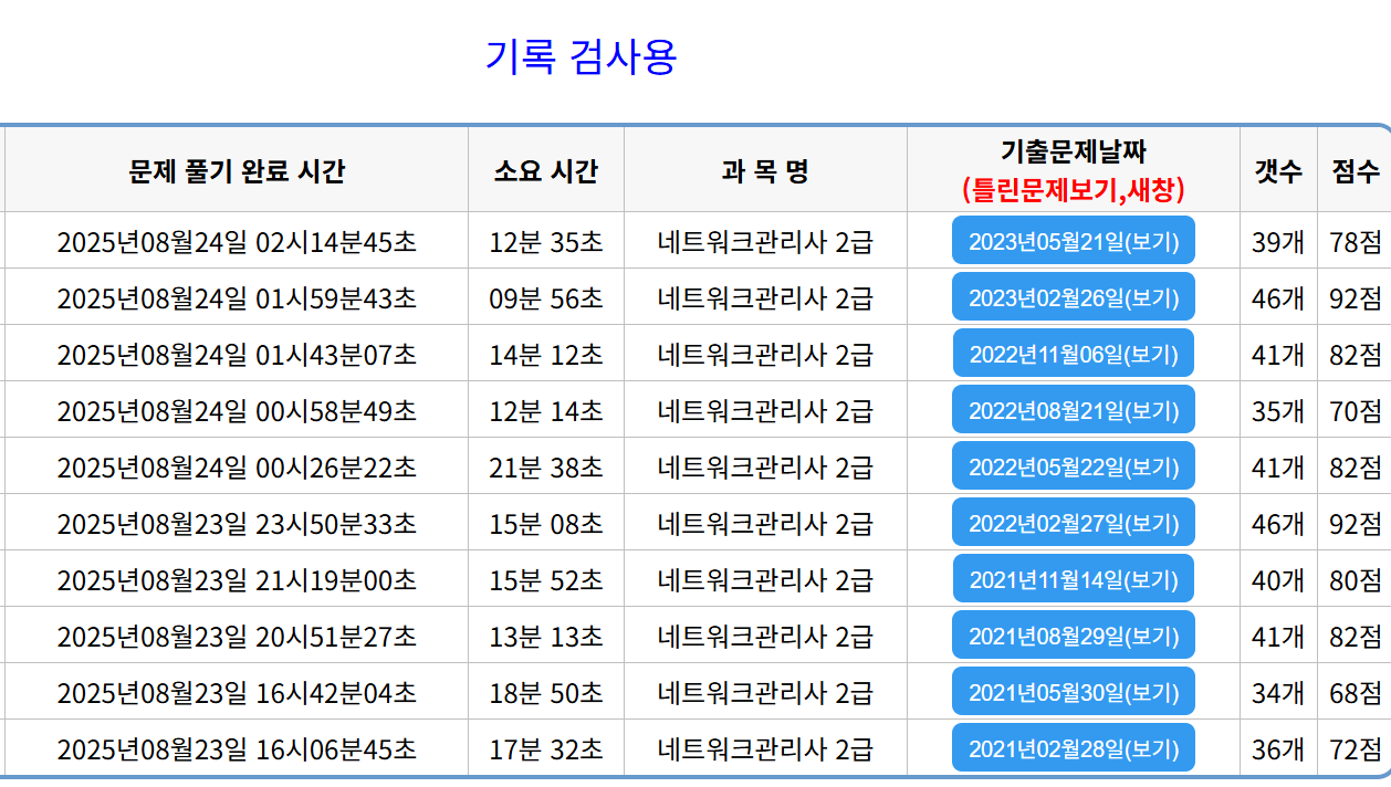 네트워크관리사 2급 실기 독학 단기합격 후기(준비기간, 문제복기, 난이도)