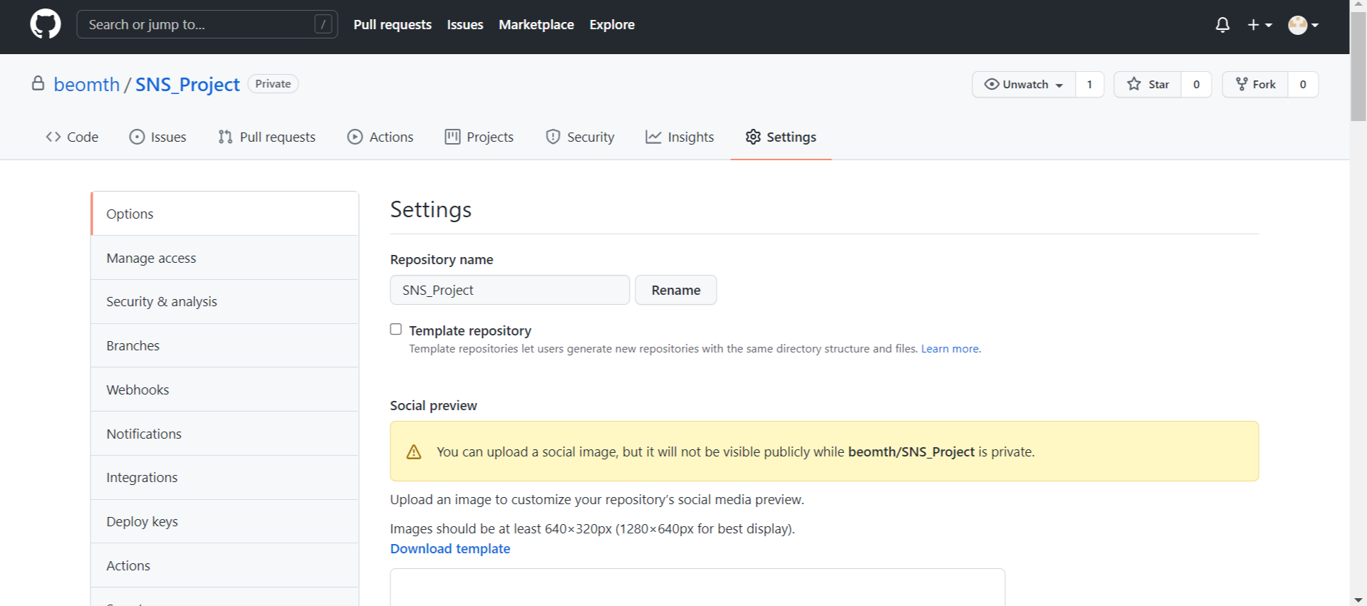 1. 삭제하고자 하는 레포지토리의 <Settings>