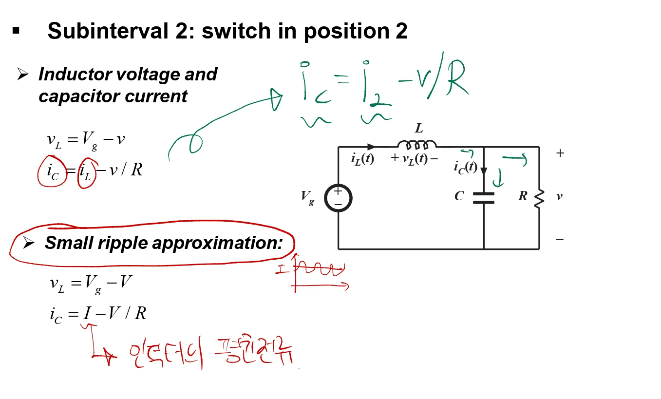 두 번째 케이스를 보면, Small ripple approximation에 의해 인덕터에 흐른 전류를 I로 보고, 키르히호프의 법칙을 통해 커패시터의 흐르는 전류값을 구할 수 있습니다.