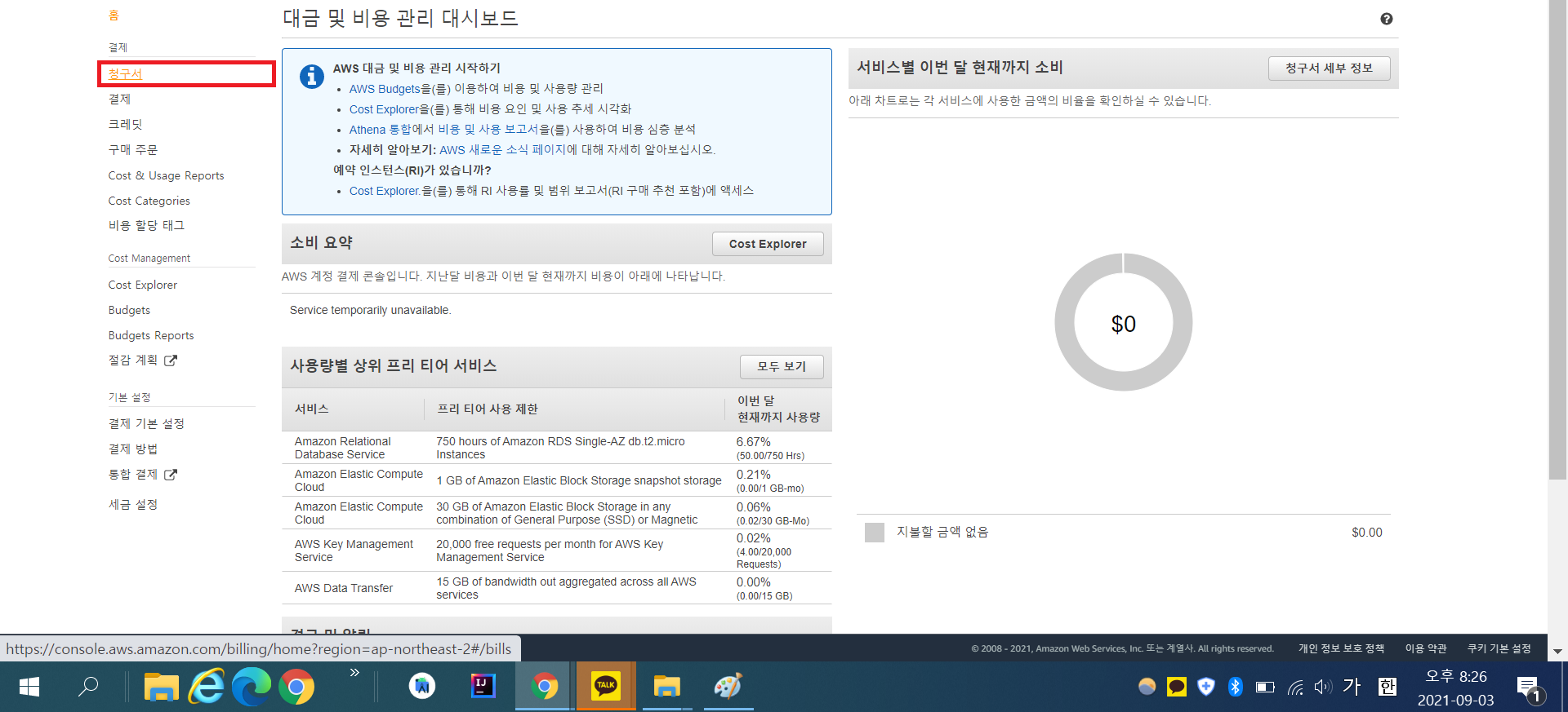 AWS에서 갑자기 청구서가 날아왔을 때 해결 방법 (6) | 2021.09.03 |