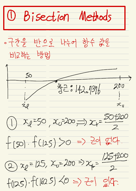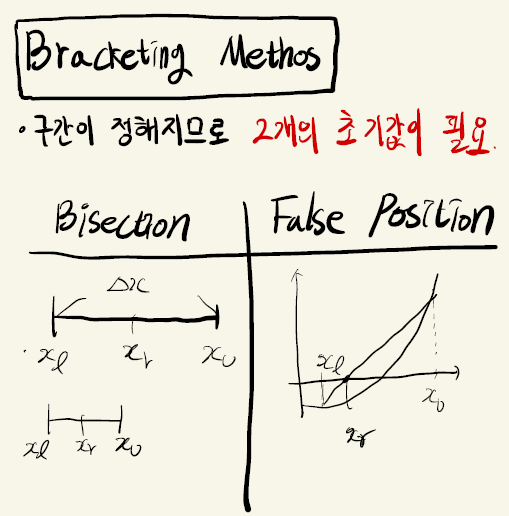 Bracketing Methods에는 Bisection Method와 False position Method가 있습니다.