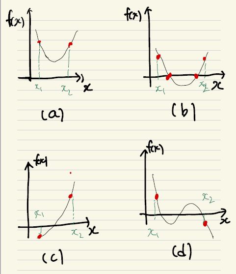 - 근을 추정하는 구간을 정했을 때 나타는 여러 경우들