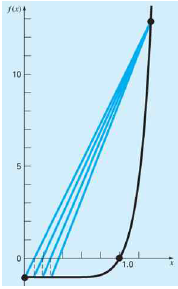 항상 bisection보다 좋은 것은 아닌데, 이렇게 심한곡률을 가진 함수는 너무 느리게 수렴하는 단점이 존재한다.