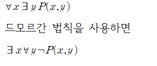 드모르간 법칙을 사용할 때 주의할 점은, ∀이 not을 취하면 ∃이 되고, ∃이 not을 취하면 ∀가 되는 것이 핵심입니다. 또한 명제에도 Not을 포함해줘야 합니다.