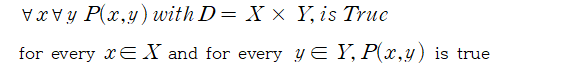 모든 x에 대해 식을 만족하는 모든 y가 있다면 명제는 참입니다. Nested Quantifier에 드모르간 법칙을 사용하면 아래와 같이 됩니다.
