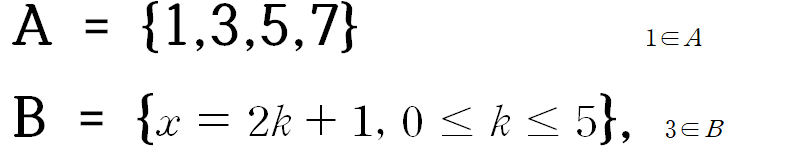 또한 B안에는 k가 0~5까지의 상수이므로 {1,3,5,7,9,11}라는 원소가 있어서 3또한 A에 속합니다.