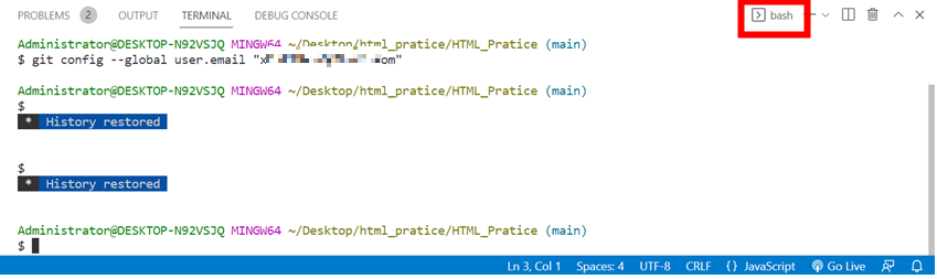 2. 자신의 Github name과 이메일을 config하는 명력어 입력
